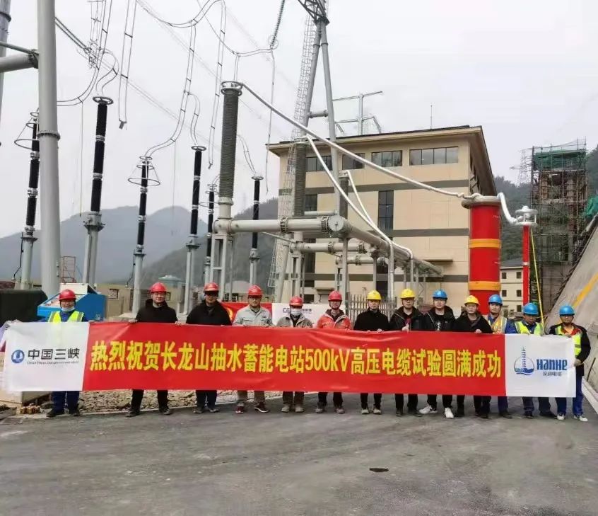 长龙山等六座电站总装机容量830万千瓦,站内送出的14回500kV超高压电缆系统均由汉缆股份供货承建,工程集系统设计、产品制造、现场施工、竣工试验、电缆状态在线监测于一体,涉及门类多,工况复杂。其中,敦化抽蓄电站采用500kV电缆的单根长度1500米,至今仍保持着国产500kV电缆单根大长度的供货记录。荒沟、梅州抽蓄电站500kV电缆出线竖井高度均超过了300米,电缆敷设施工难度非常大。这六个项目在执行过程中,汉缆股份克服种种技术难题,在500kV电缆生产过程中创造了一个又一个奇迹。在新冠疫情来临时,积极调整内部资源,全力以赴保证生产供货、现场施工服务。总包项目部团队更是不惧困难,在荒无人烟、连手机信号都没有的施工现场,一住就是三四个月,克服了现场施工过程中的各种难题。六个项目、14回500kV超高压电缆均一次性通过竣工试验并成功投运,向客户展示了汉缆股份一贯坚持高品质、优质服务和不断创新发展的优良作风。这些成绩的取得也是汉缆股份多年布局高压、超高压电缆市场,为电力传输提供全套解决方案的成功案例。